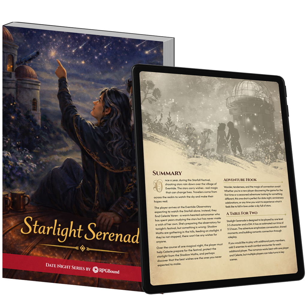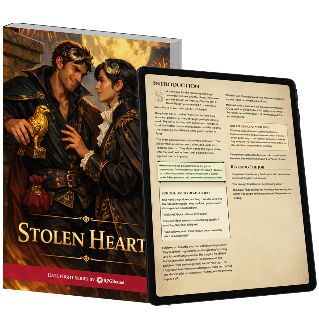 One person plays the lead (DM). The other brings every character, every twist, every moment to life. No complicated rulebooks to study. No experience required.